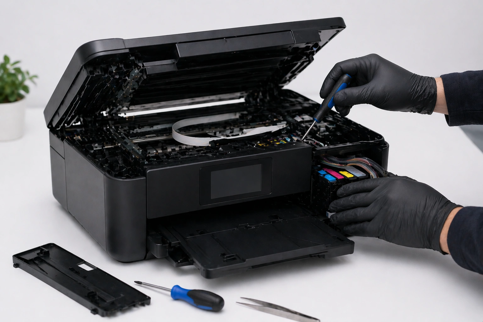 Our printer service and support covers a wide range of printers, including laser, inkjet, sublimation, DTF, DTG, wide-format, plotter, and CO₂ engraving printers from brands like HP, Epson, Canon, Brother, Roland, Glowforge, and more.